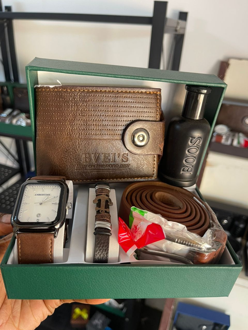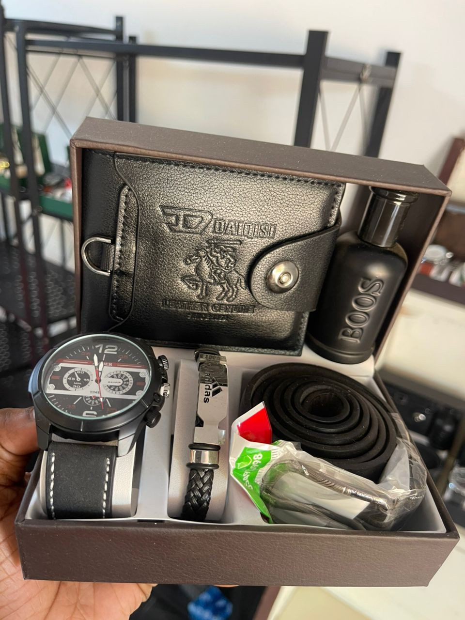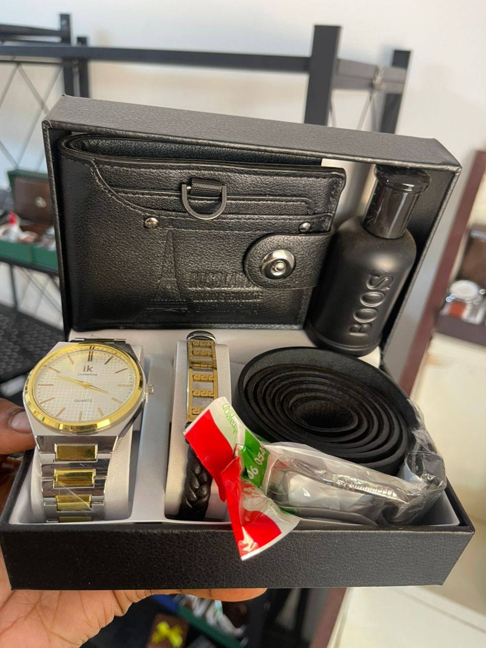 Coffret Cadeau Homme Complet – Montre, Bracelet, Ceinture, Porte-Monnaie & Parfum – Disponible au Togo