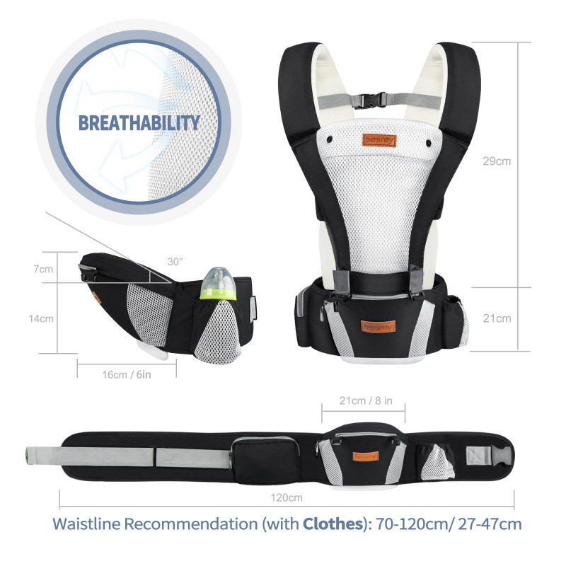 Conception du Siège de Hanche : Conçu avec un large siège rembourré, le bébé est confortablement assis avec les hanches bien soutenues, tout en vous offrant un moyen pratique de monter et descendre facilement et instantanément votre bébé.