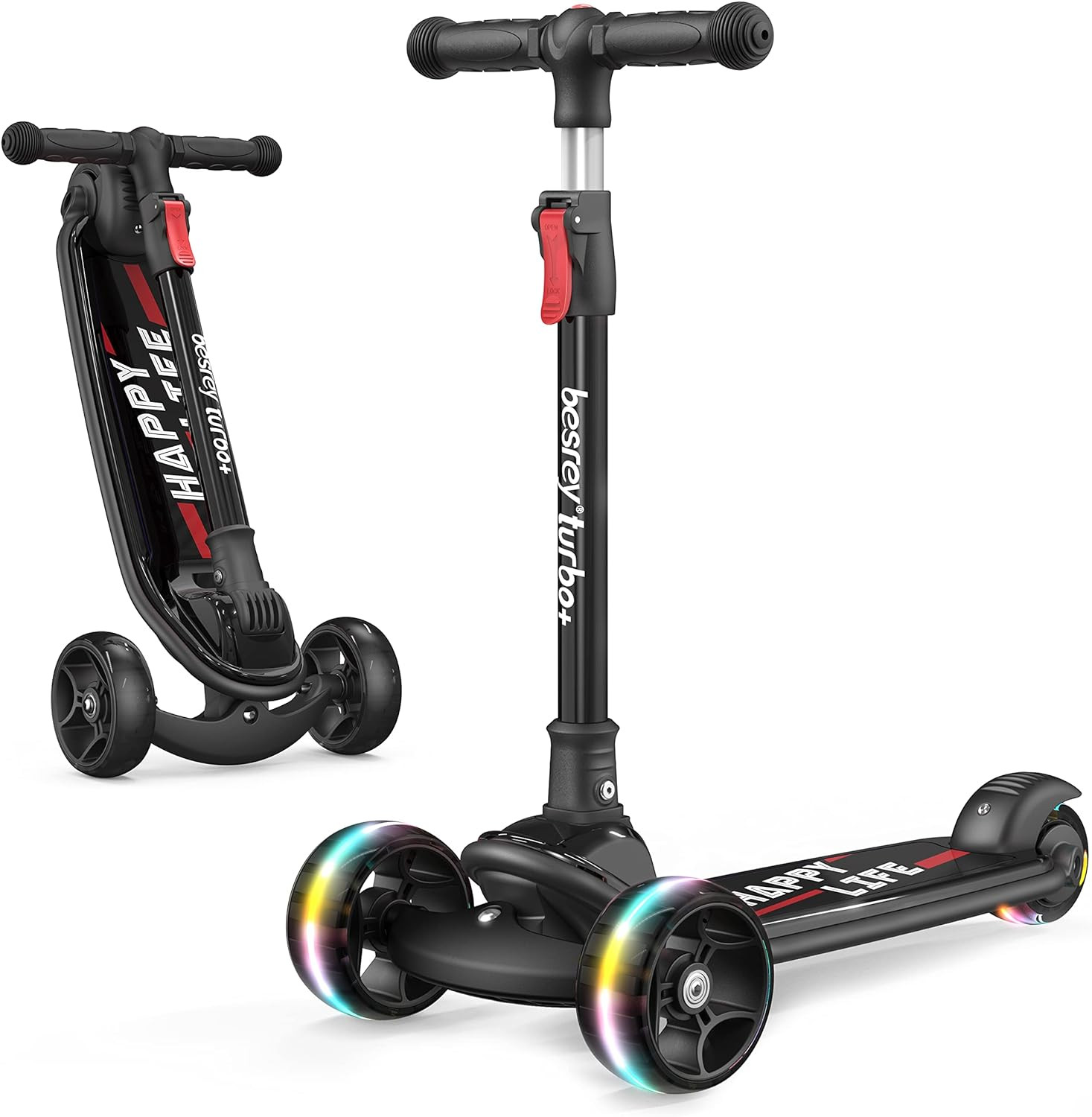 besrey Trottinette Pliable pour Enfant de 2 à 10 Ans, Trottinette Enfant 3 Roues débutante avec Roues Lumineuses, Hauteur réglable