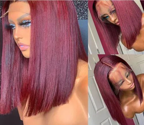 Perruque de couleur de haute qualité 99J Bob Wig 13X4 Perruque avant en dentelle Bourgogne Bob Wig