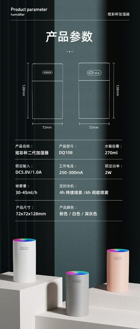 Humidificateur d'air en forme de tasse colorée, populaire et créatif, transfrontalier, pour bureau, maison, voiture 270ml