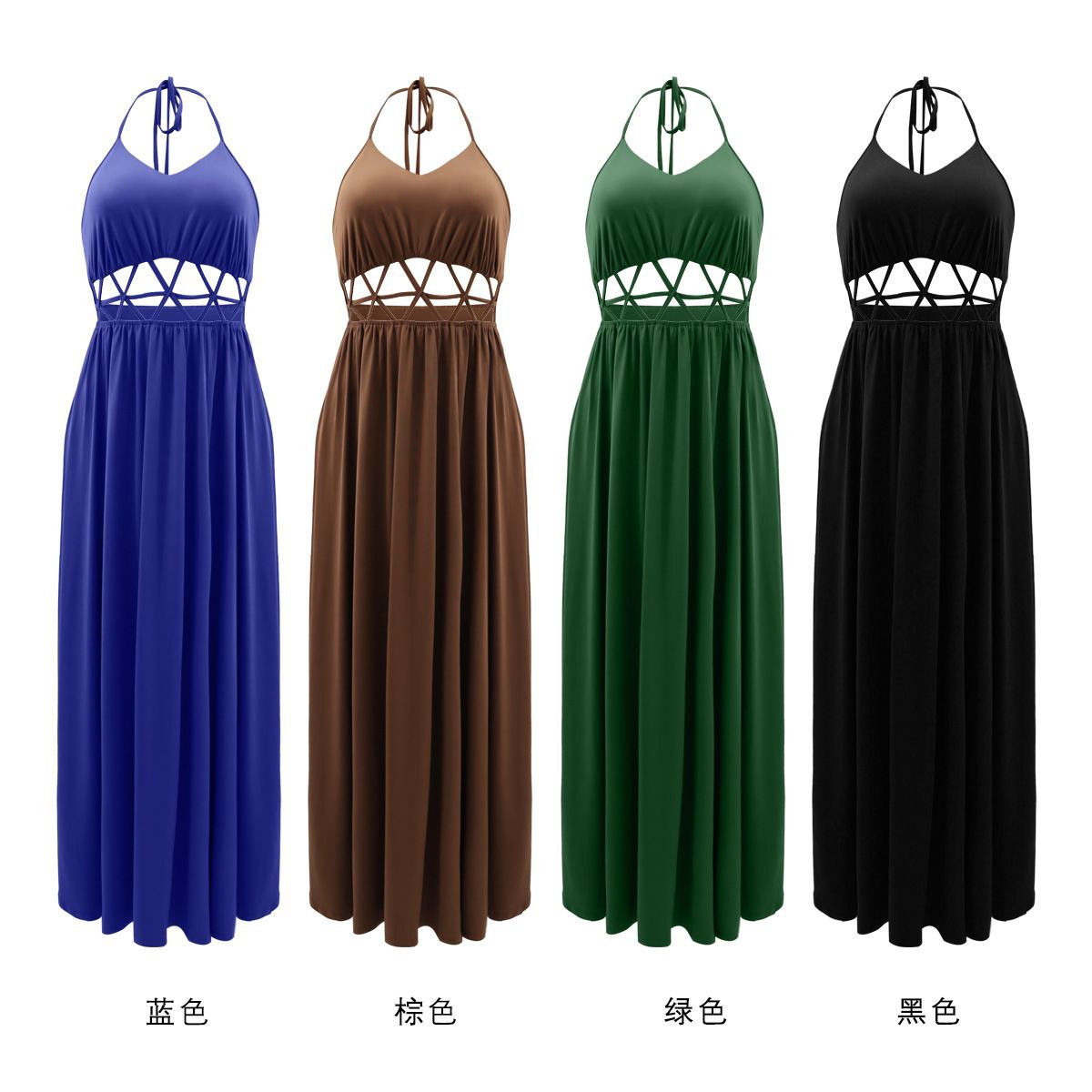 Robe transfrontalière européenne et américaine sexy taille haute creuse dos nu à lacets fente décontractée pour femmes