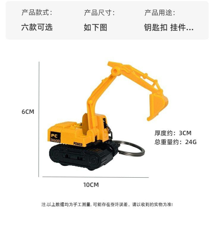 Porte-clés d'excavatrice de véhicule d'ingénierie en alliage de dessin animé créatif, pendentif de sac exquis et mignon, petits cadeaux pour les couples