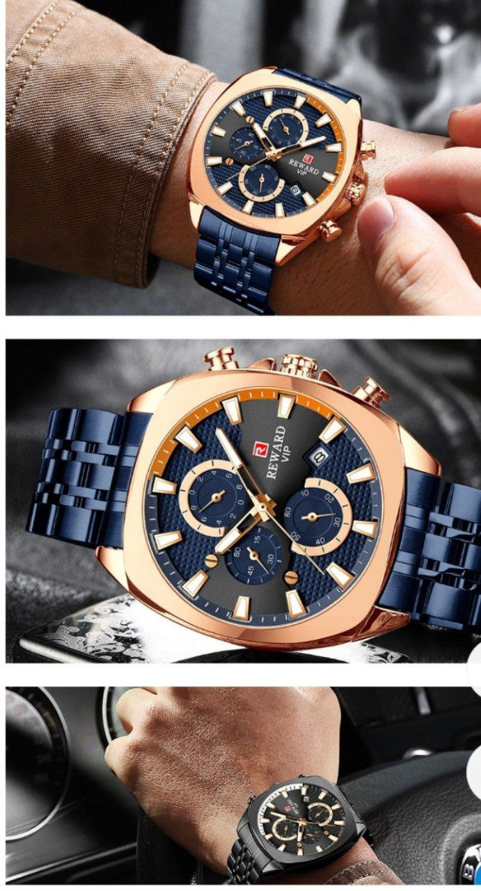 Montre pour hommes d'affaires trois broches six yeux multifonction étanche montre de sport lumineuse bracelet en acier inoxydable boucle papillon