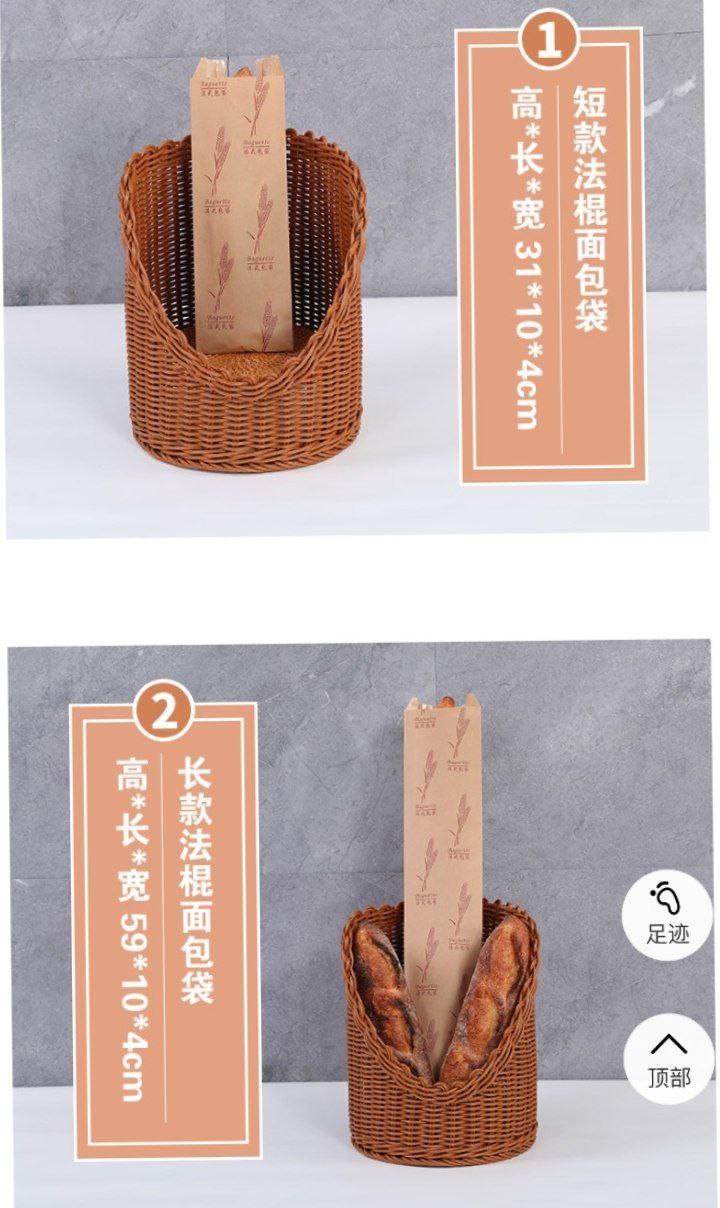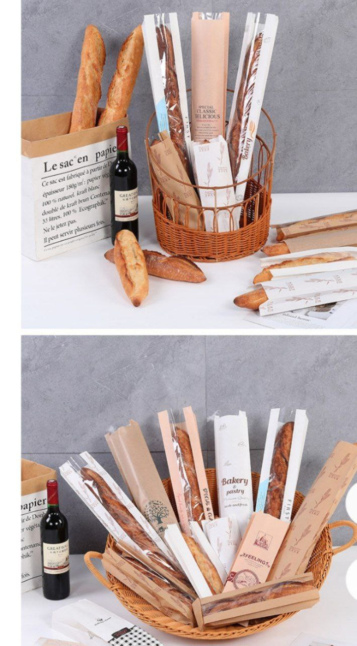 Sac d'emballage de baguette française, sac d'emballage universel à longue bande, sac de baguette en gros, usine de sacs en papier de pain français, emballage de baguette courte