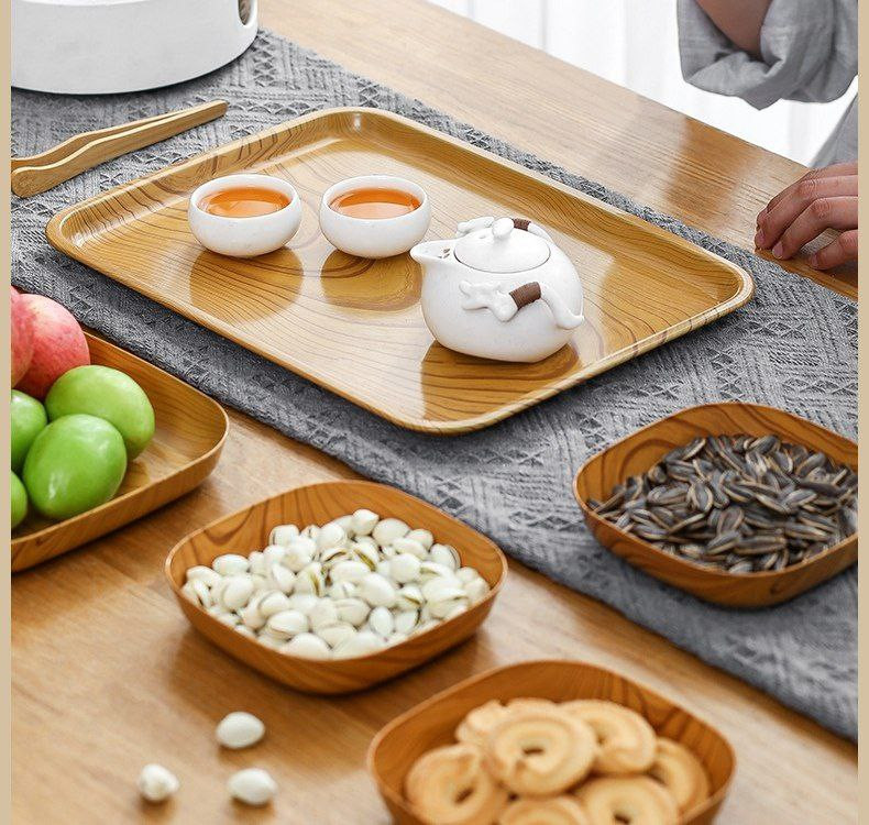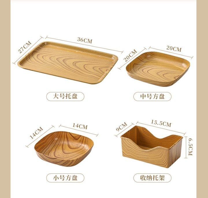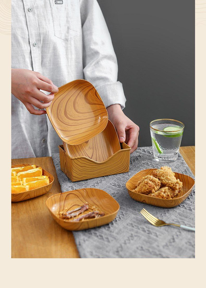 Plat carré en os de broche à grain de bois de mélamine de style chinois, collations, fruits secs, gâteau aux fruits, collations, plat en os d'art du thé, plateau d'assiette du milieu 14cm, 10pcs