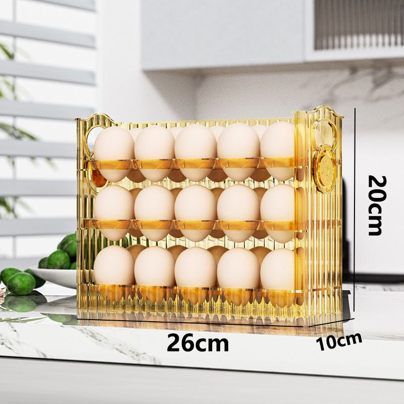 Boîte de rangement des œufs côté réfrigérateur réversible grande capacité divisée cuisine à trois couches bac à œufs transparent et aux œufs de canard 30trous