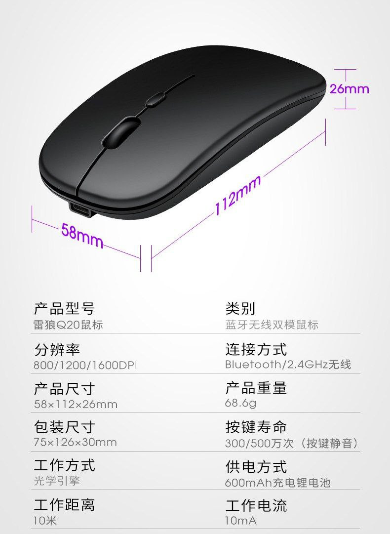 Souris de chargement sans fil Bluetooth 5.0 souris double mode 2,4 G Bluetooth fonction de souris silencieuse double mode adaptée à Apple