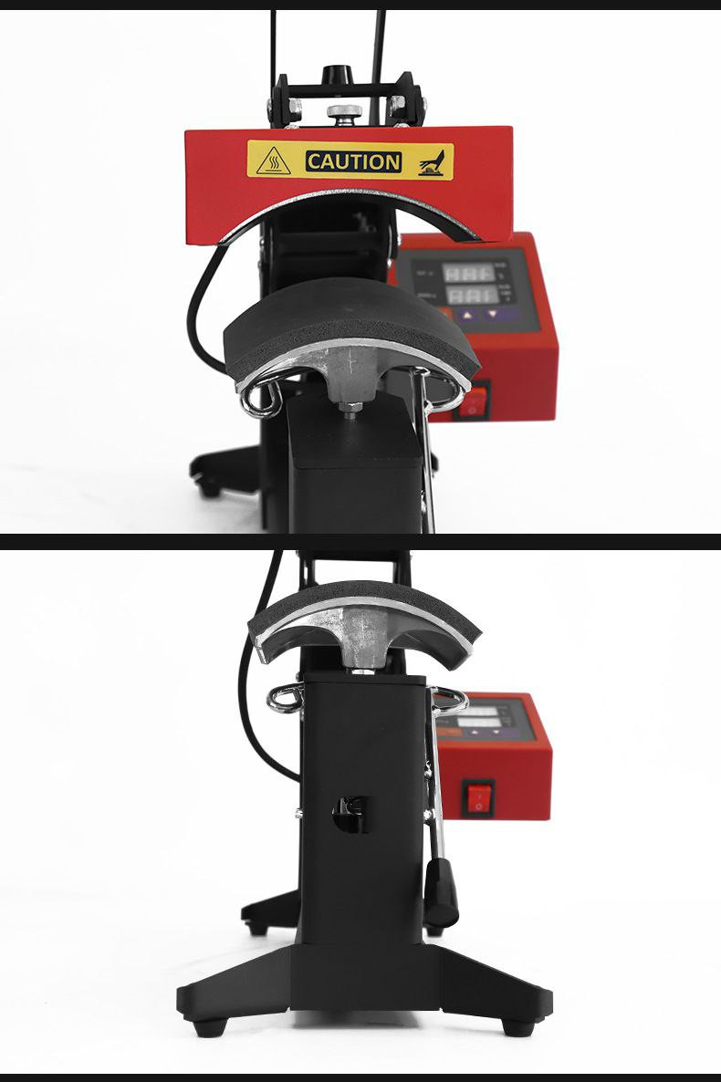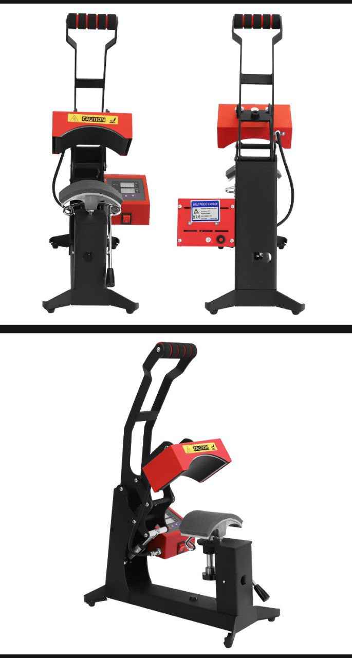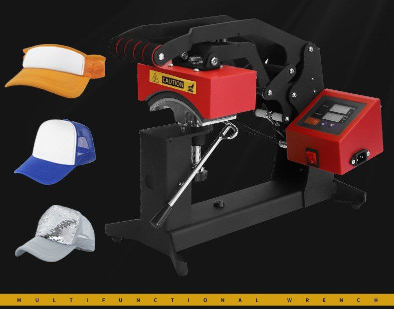 Nouvelle machine d'impression sur casquettes et chapeau dotée d'un grand format d'impression et d'un dispositif de positionnement. La machine de repassage de casquettes peut être combinée avec des composants d'étiquetage à chaud pour former un deux-en-un