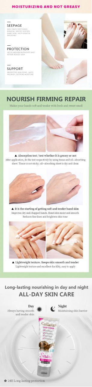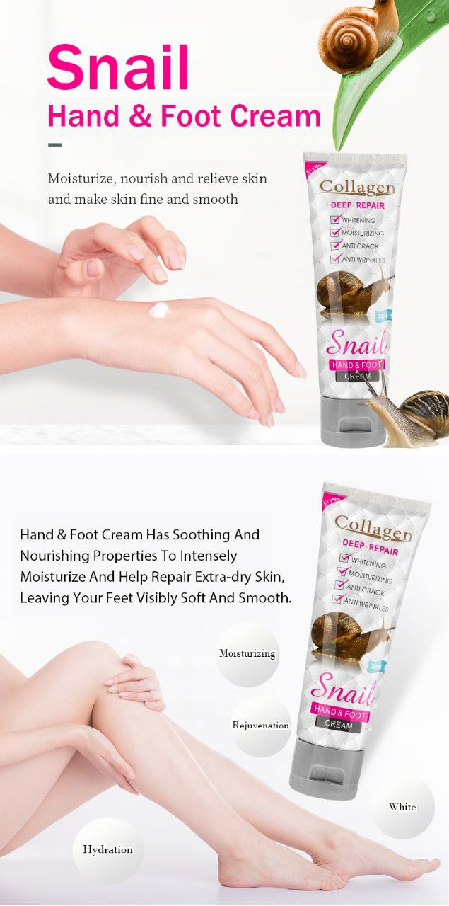Crème pour les mains liquide d'escargot transfrontalière soin des pieds hydratant crème pour les pieds anti-gerçures.