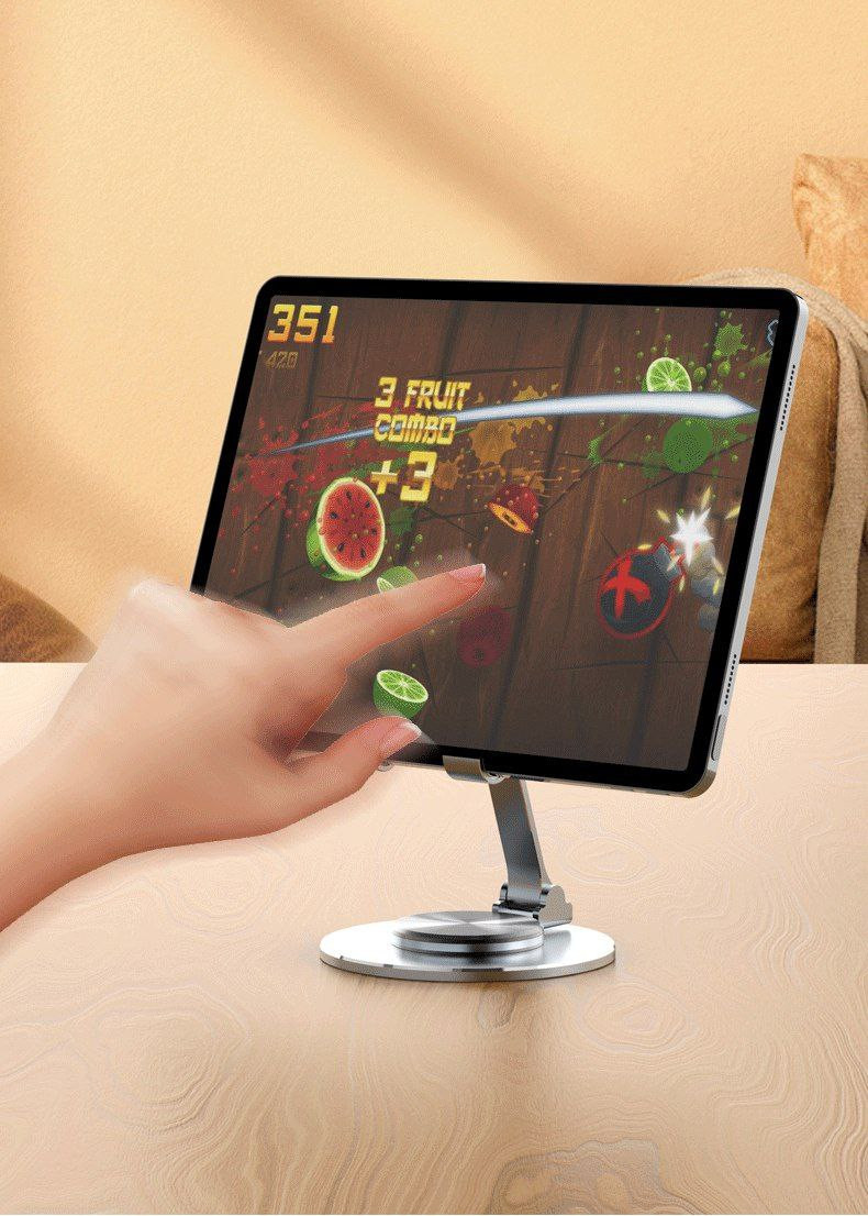 Support de téléphone portable en alliage d'aluminium en métal, rotation à 360 degrés, adapté au support de bureau multifonctionnel pliable pour téléphones tablettes