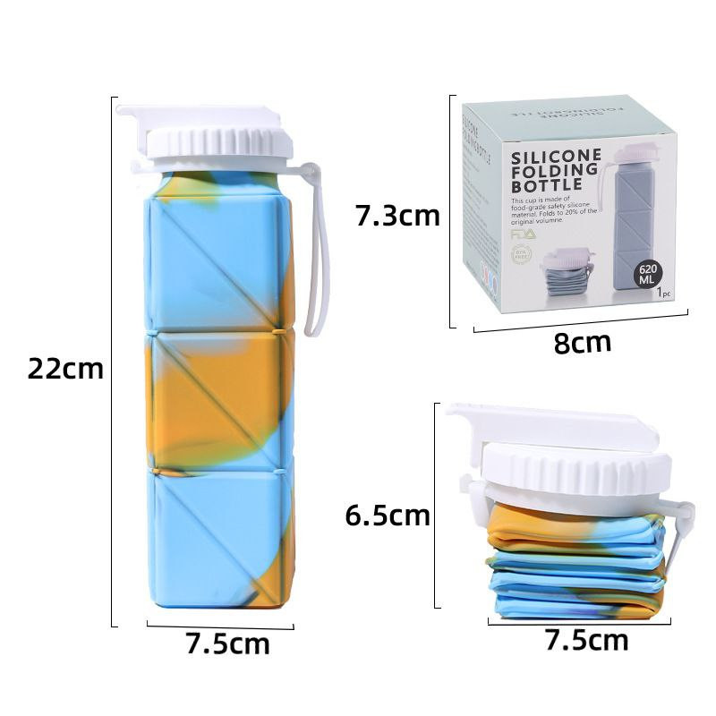 Tasse à eau portable rétractable de qualité alimentaire pliante en silicone carrée 620 ml
