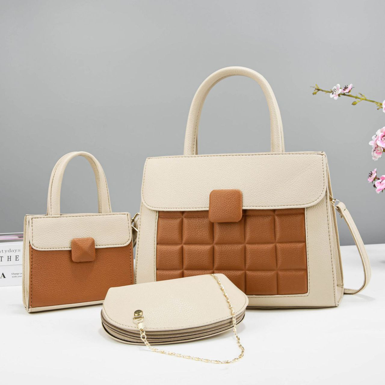 Sac a trois pièces pour femmes fourre-tout de banlieue niche couleur assortie.