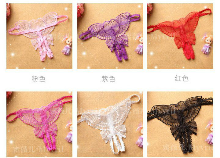 String pour femme entièrement transparent, culotte en T, grand papillon, jolie fille japonaise, entrejambe ouvert, sous-vêtements sexy 003