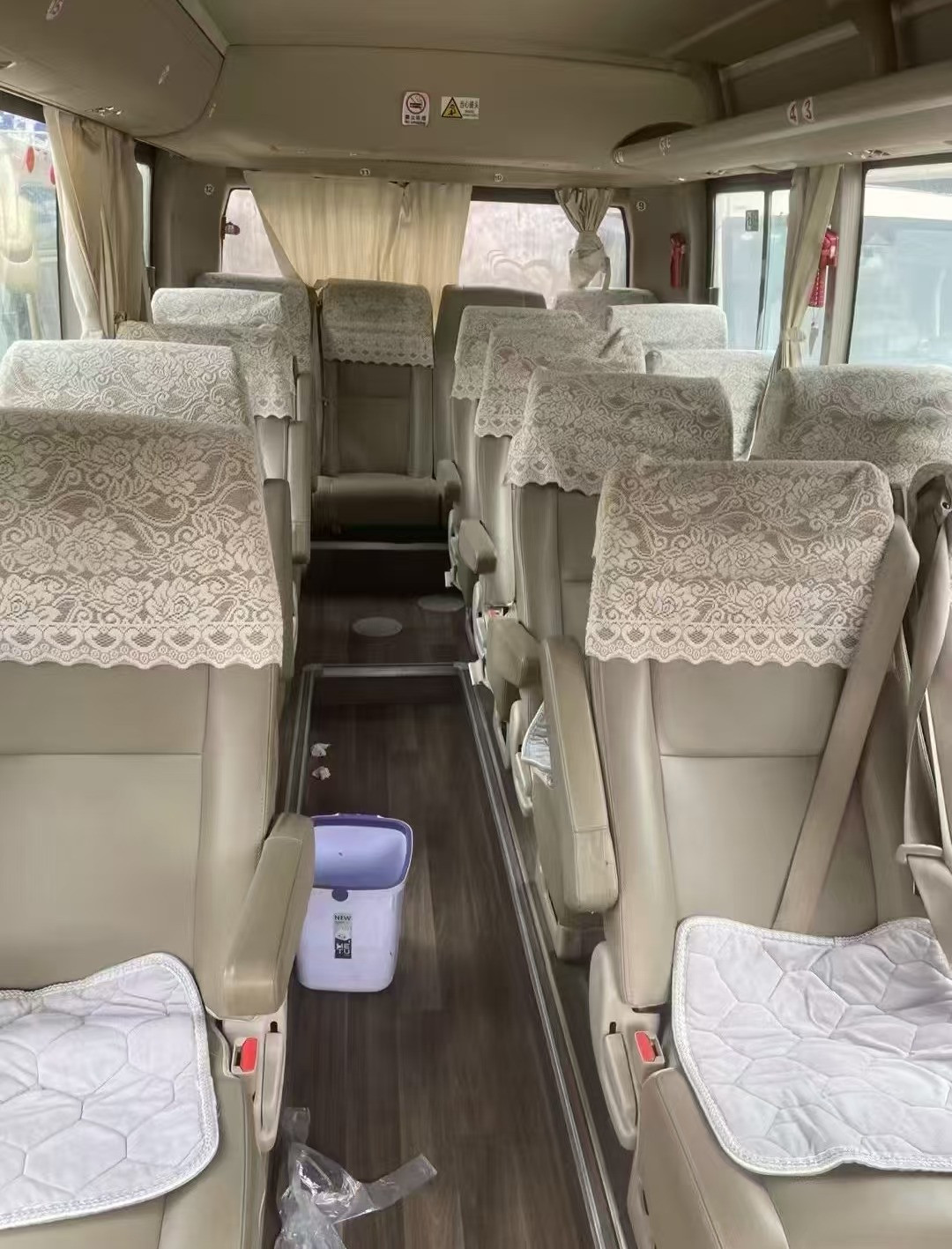 [Configuration du véhicule] Climatisation, 18 places, petit et haut niveau, double vitesse relevable ! Moteur diesel Shanghai 150 CV, boîte de vitesses rapide à 6 rapports, porte avant, revêtement de siège en cuir, plancher en cuir grainé de bois, cabine traversante, caméra de recul couleur, sièges avant et arrière réglables avec port de chargement USB