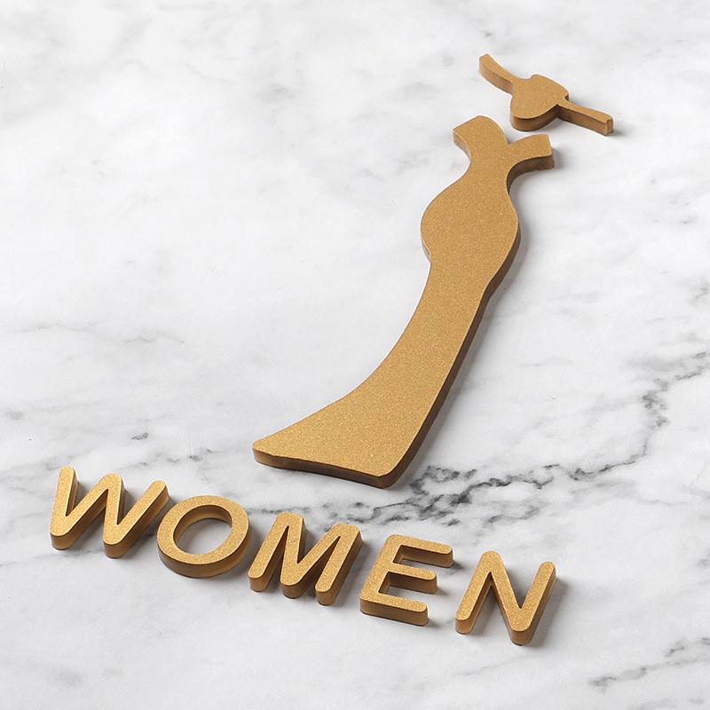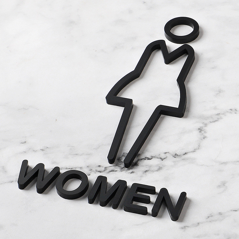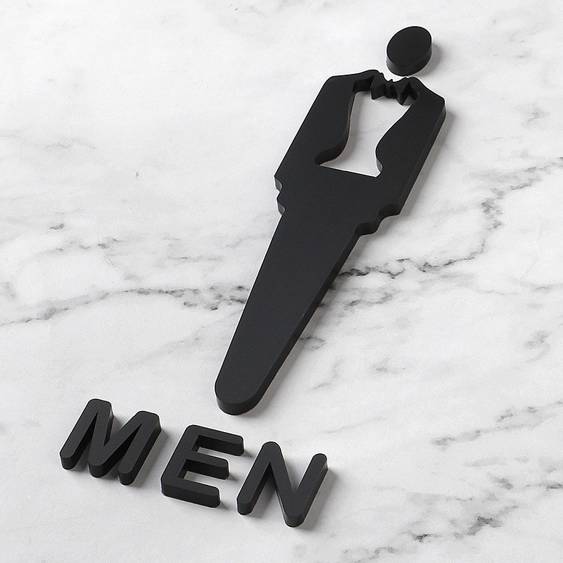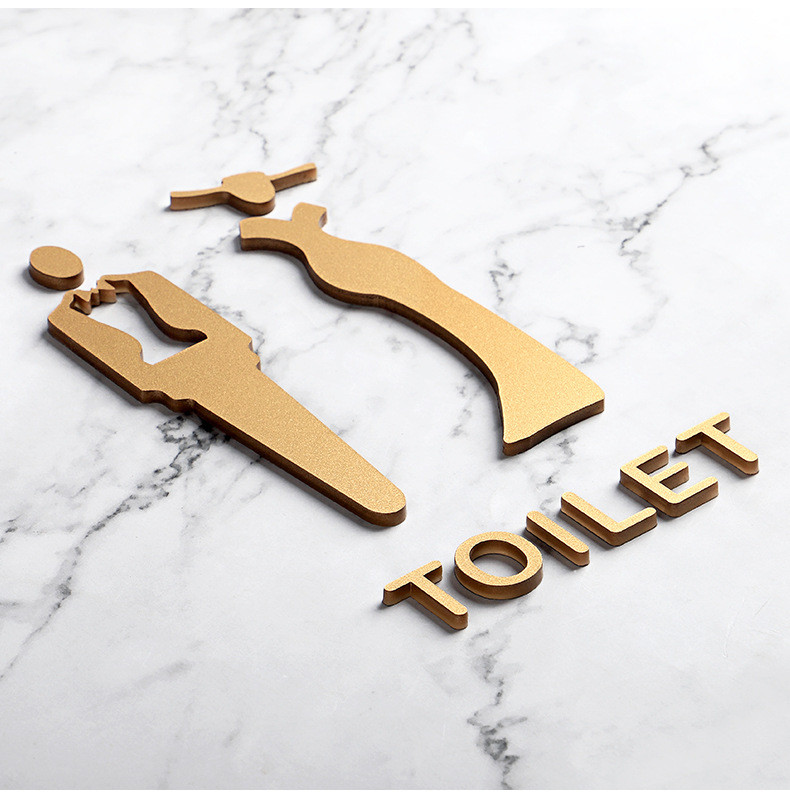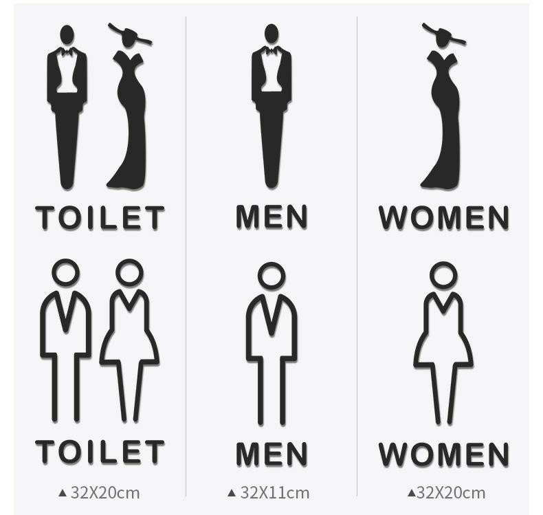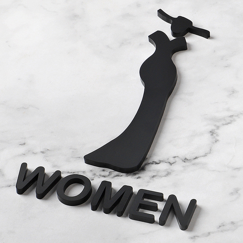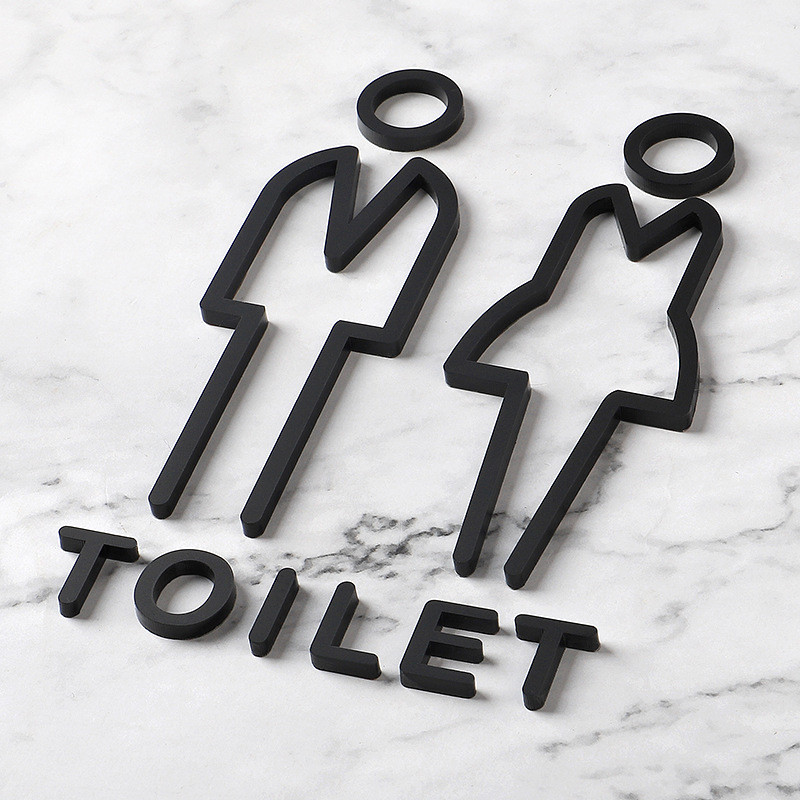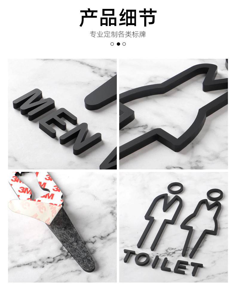 Signe de porte de salle de bain en acrylique Modèle tridimensionnel Médiction de toilette Men et femmes Bureau de toilette public Signe de toilette