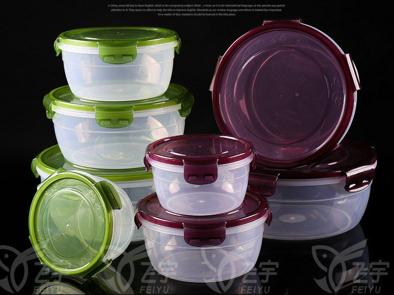 Cuisine Plastique Boîte de maintien frais Bonto Boîte à lunch Round Plastique Micro-ondes Réfrigérateur Alimentation Boîte de scellage lot de 4pcs
