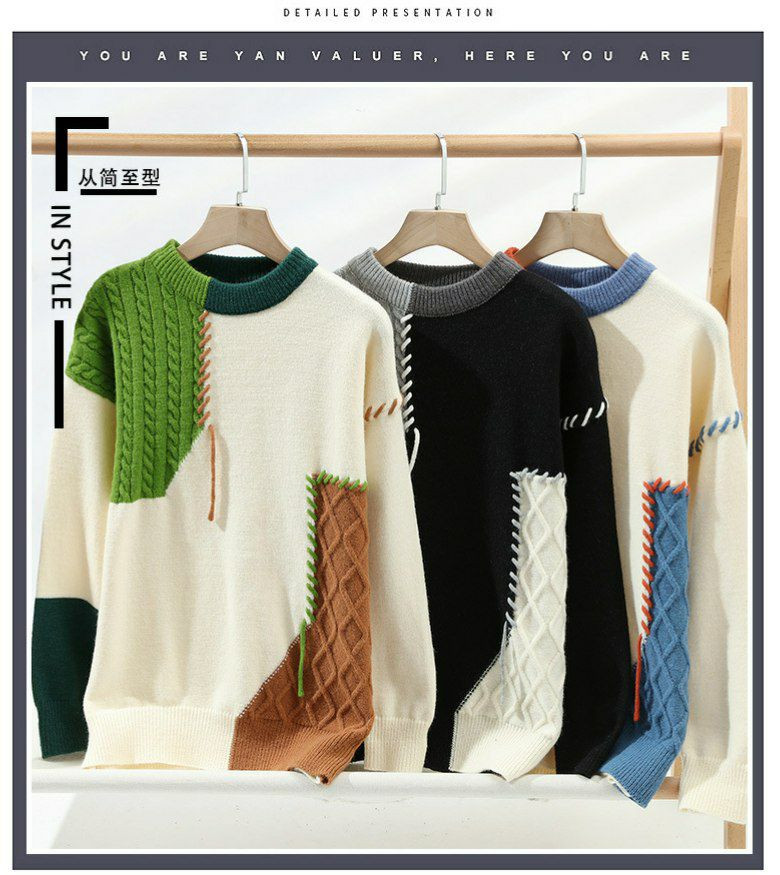 Nouveau Pulls en tricot patchwork col rond de style décontracté Base pull en tricot, vêtements pour hommes