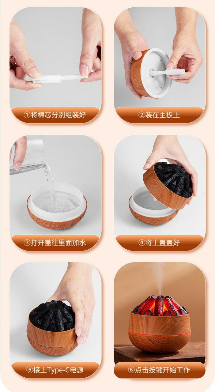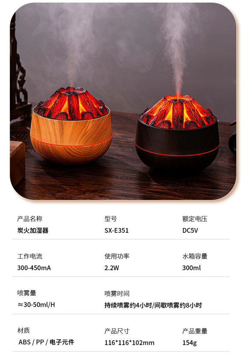 Humidificateur d'air et diffuseur d'arômes au design imitant un feu de charbon de bois.