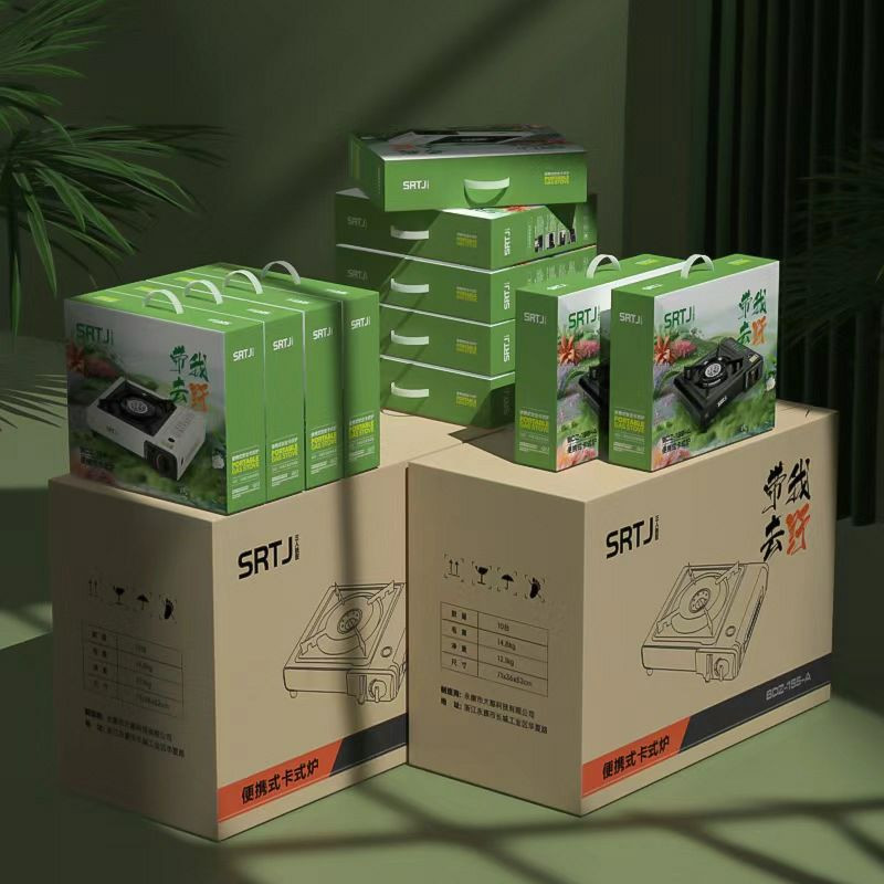 Boîte pour un réchaud à gaz portable de la marque SRTJ, modèle BDZ-155-A.
