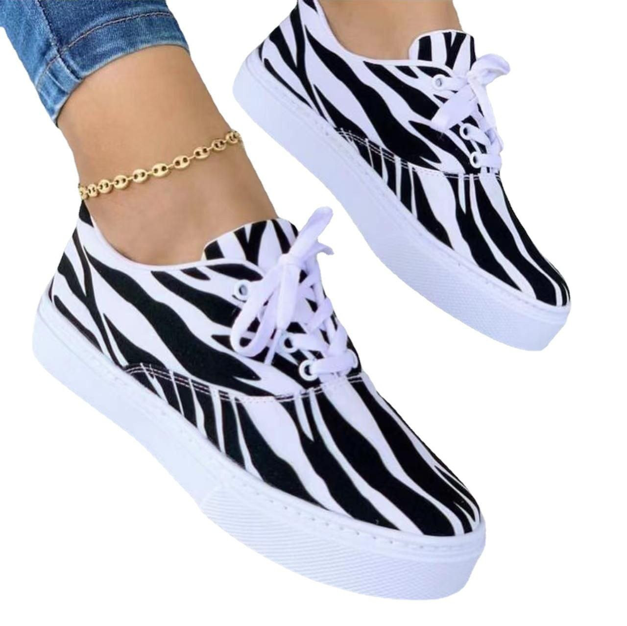 chaussures simples chaussures en toile femmes 2022 printemps nouvelle couleur d'impression correspondant à des baskets à lacets à fond épais