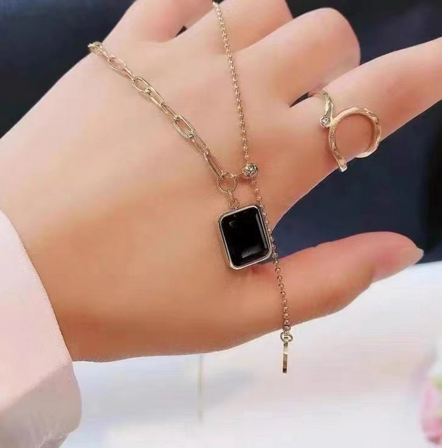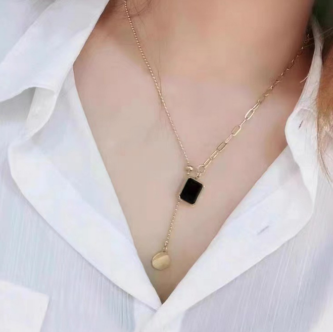 Le nouveau collier de traction en sucre carré noir simple de printemps ne se décolore pas la chaîne de clavicule de tempérament sauvage en acier au titane
