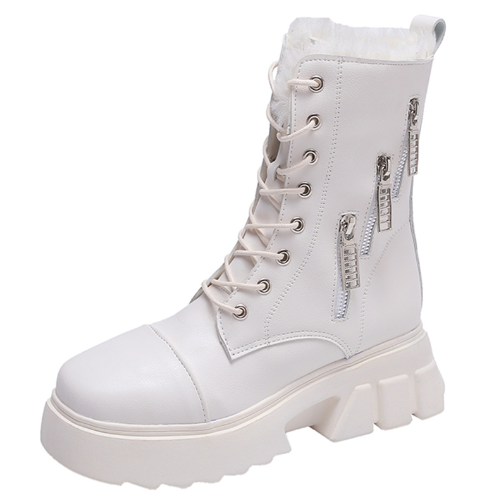 Nouvelles bottes courtes bottes Martin bottes femme hiver plus velours mi-tube cent modèles d'hiver épaissies chaudes faible aide cuir surface chaussures coton