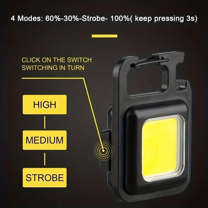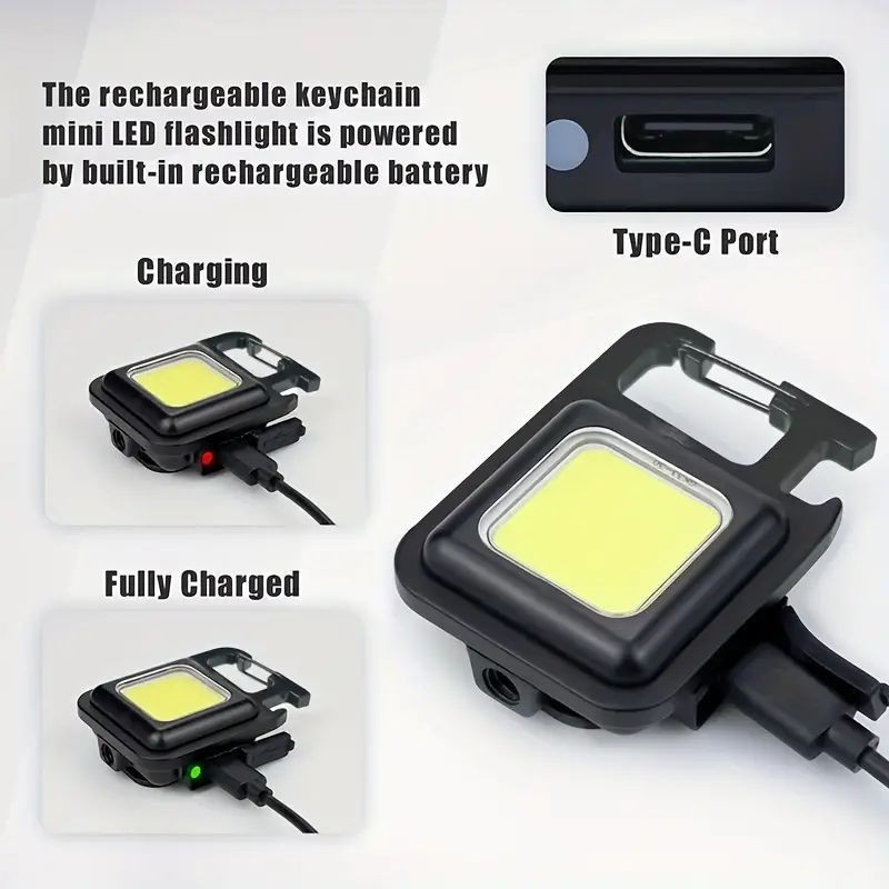 Lampe de camping porte-clés pratique Lampe d'urgence multifonction COB rechargeable Mini lampes de camping à haute luminosité.